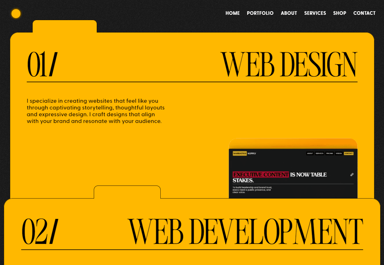 Client Testimonials were personal and suitable to the branding, reinforcing them as a prominent figure in the web design industry.